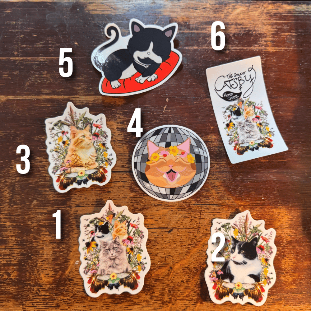 Season 3 decals are here! These 2.5 inch decals are durable and high quality decals featuring the floral portraits of the cartel crew, cozy topher, Cat's Meow Gouda, and our season 3 poster!
